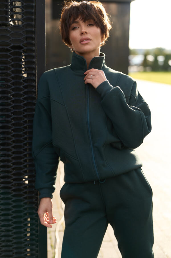 Теплий жіночий костюм зі стойкою та джогерами EVELYN Зелений