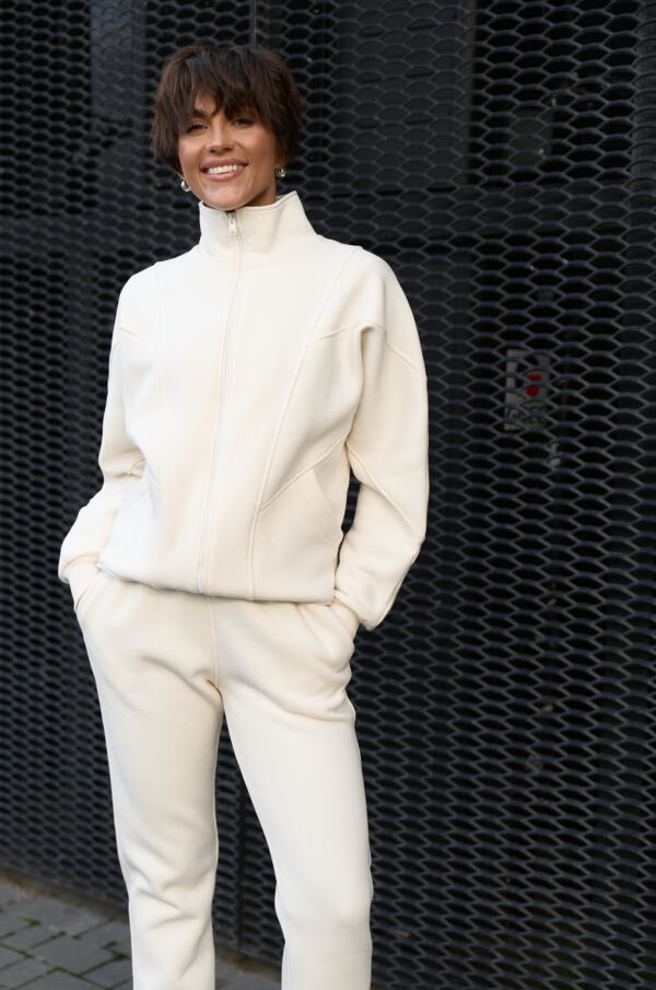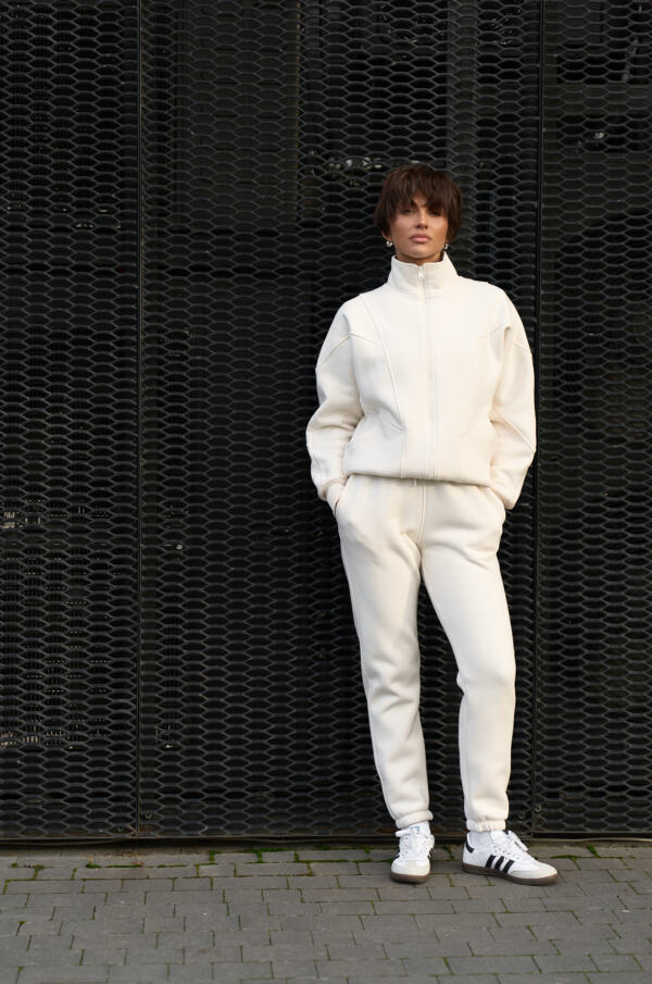Теплий жіночий костюм зі стойкою та джогерами EVELYN Айворі