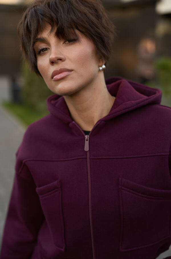 Теплий жіночий костюм зі стойкою та джогерами EVELYN Бургунді