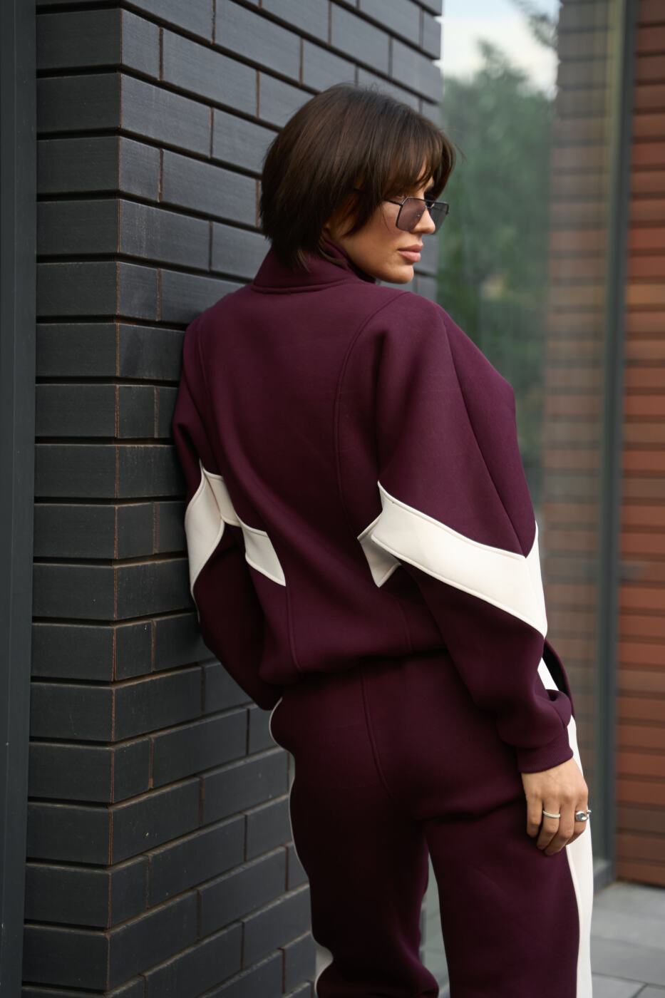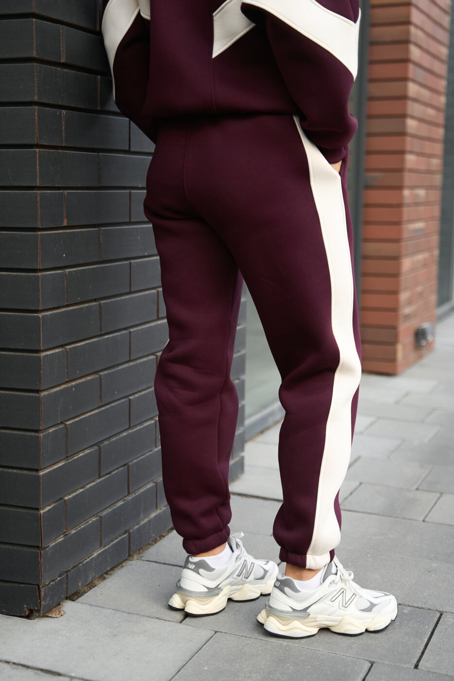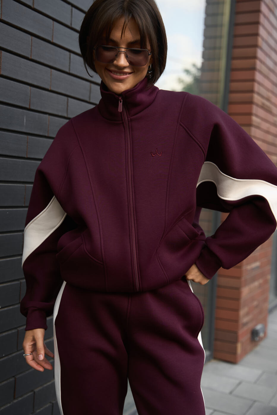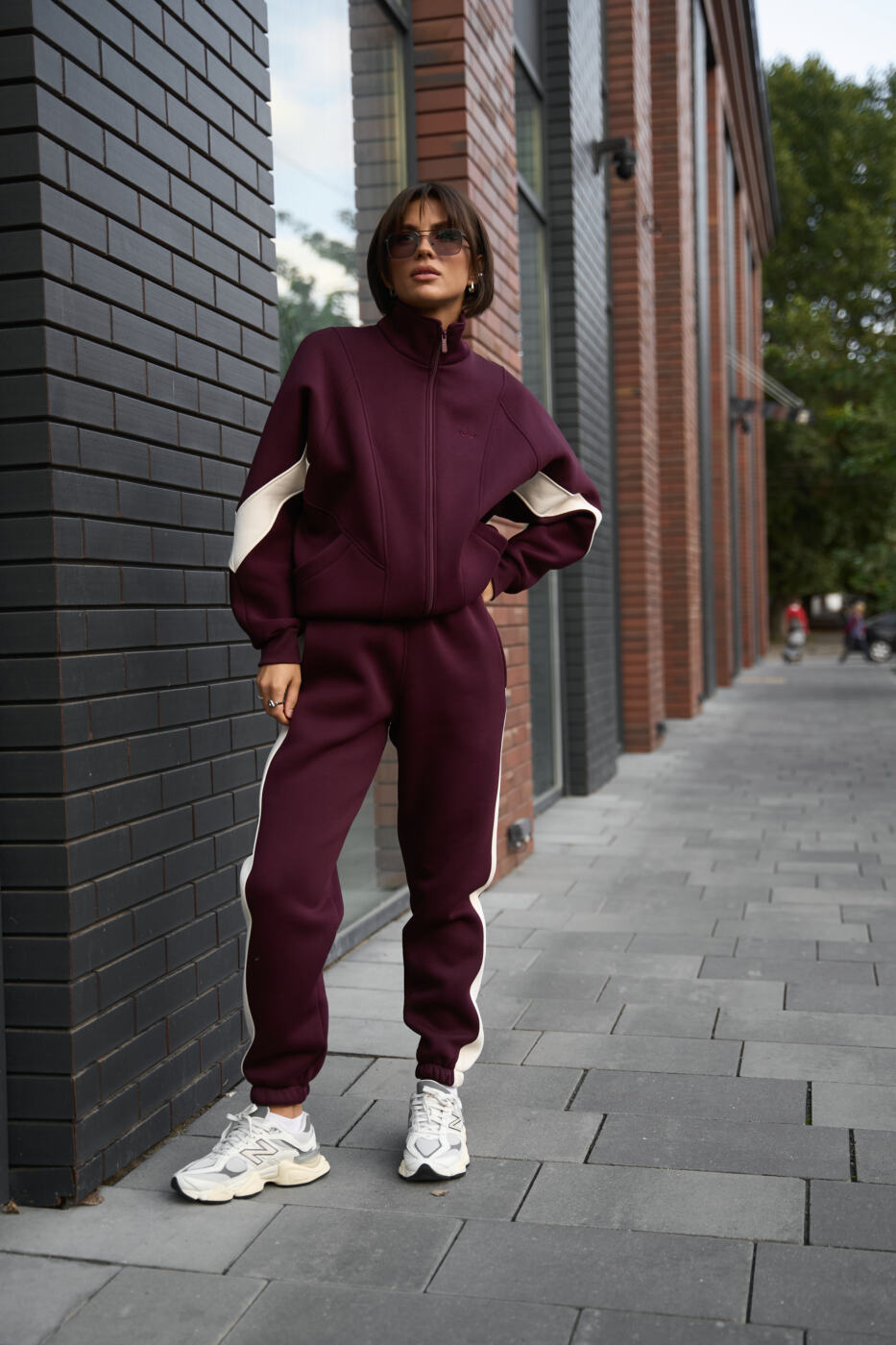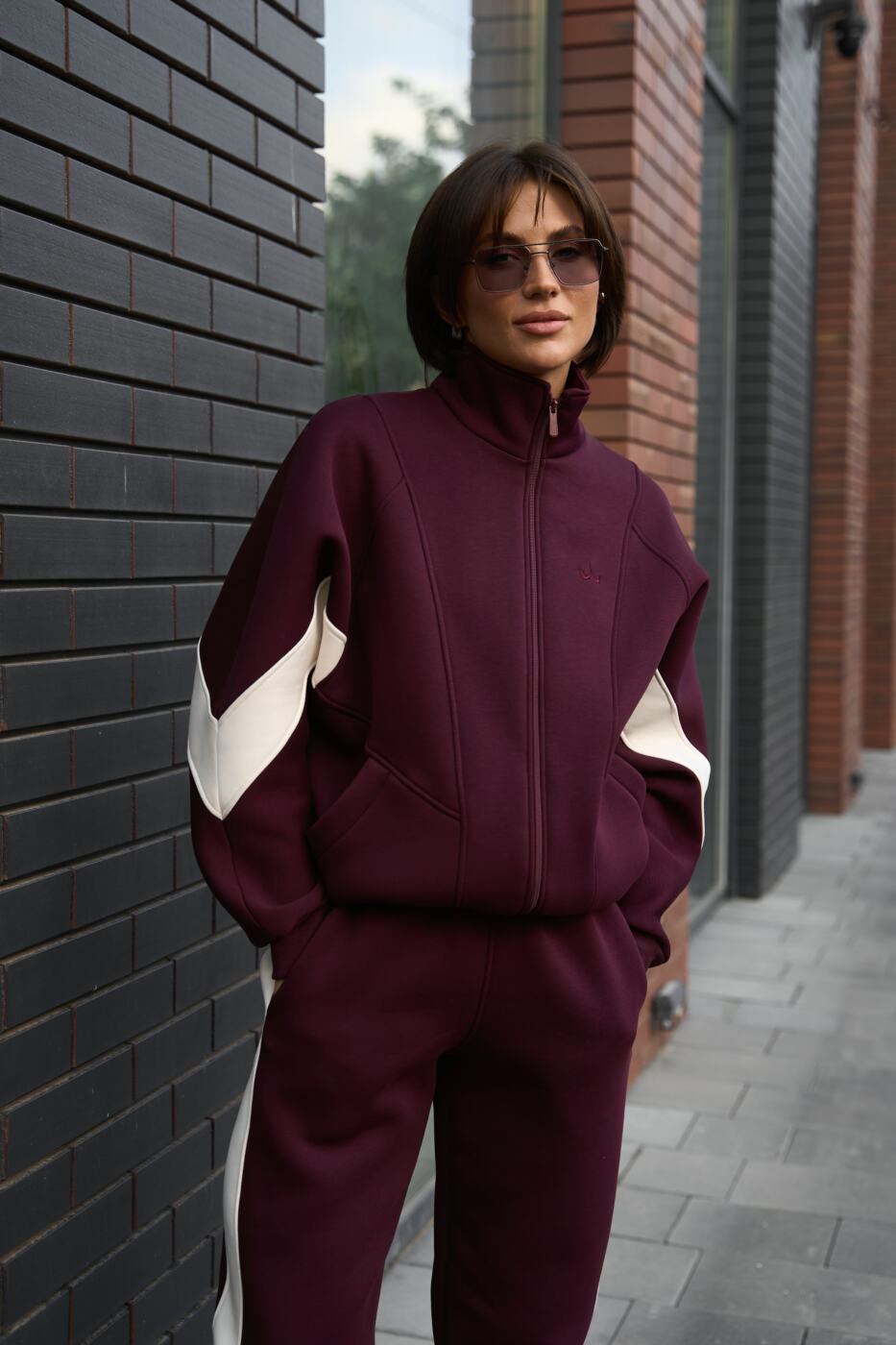 Комбінований оверсайз костюм Evelyne з трьохнитики на флісі Бургунді+Таш