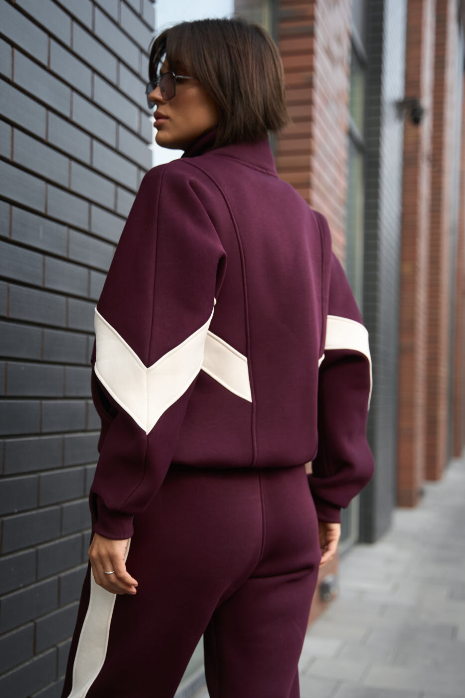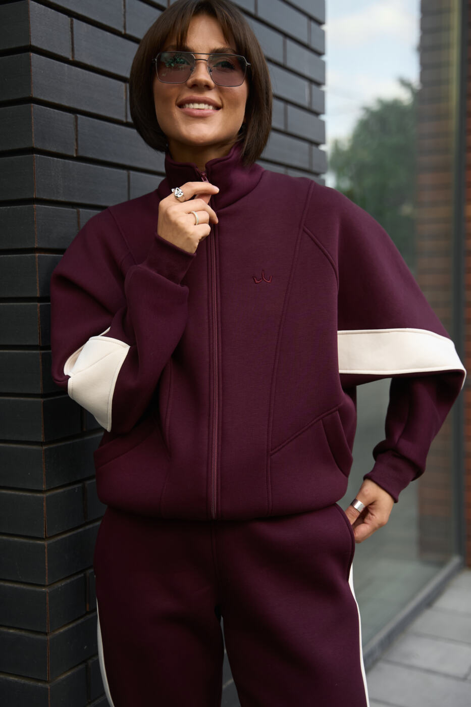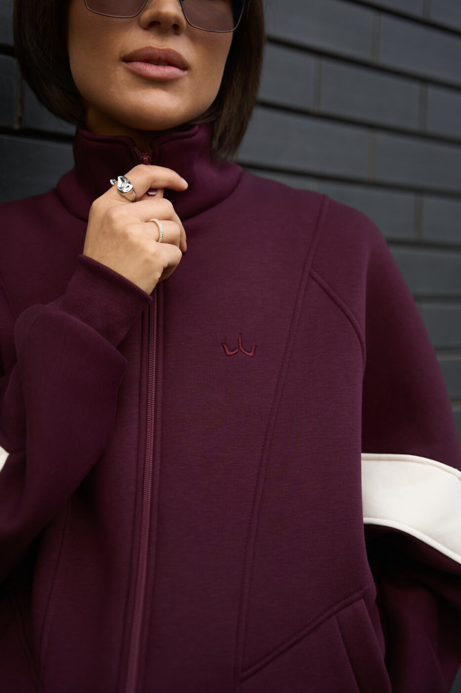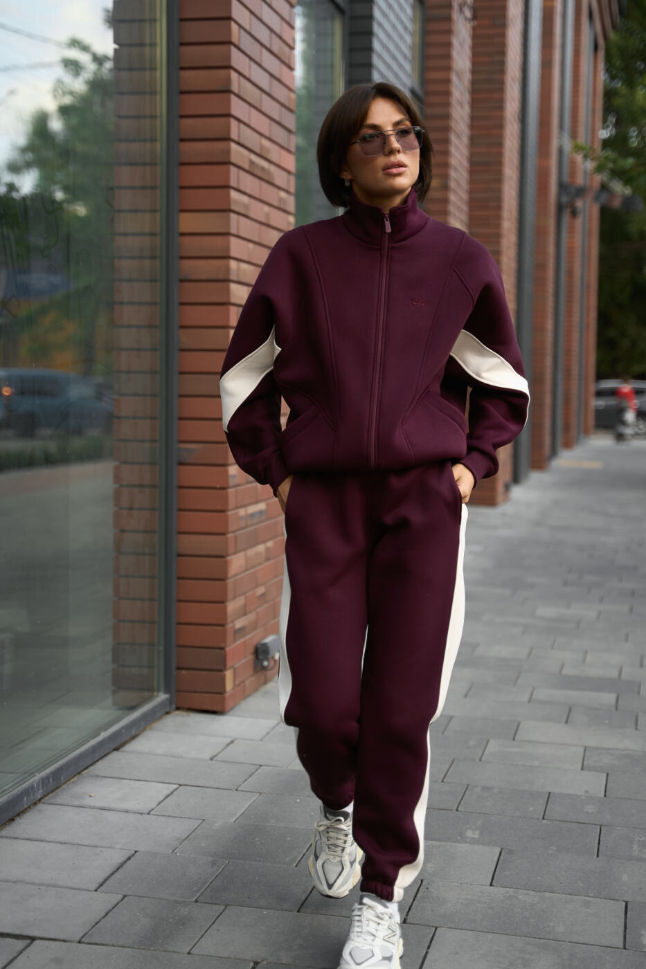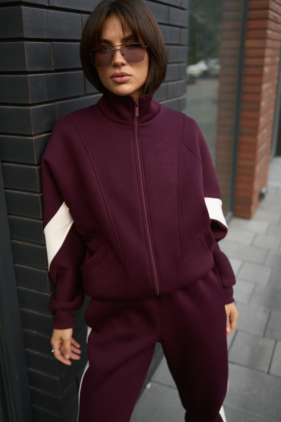 Комбінований оверсайз костюм Evelyne з трьохнитики на флісі Бургунді+Таш