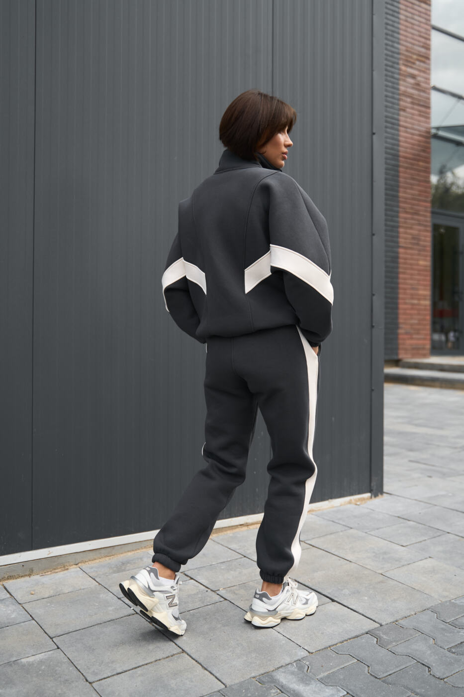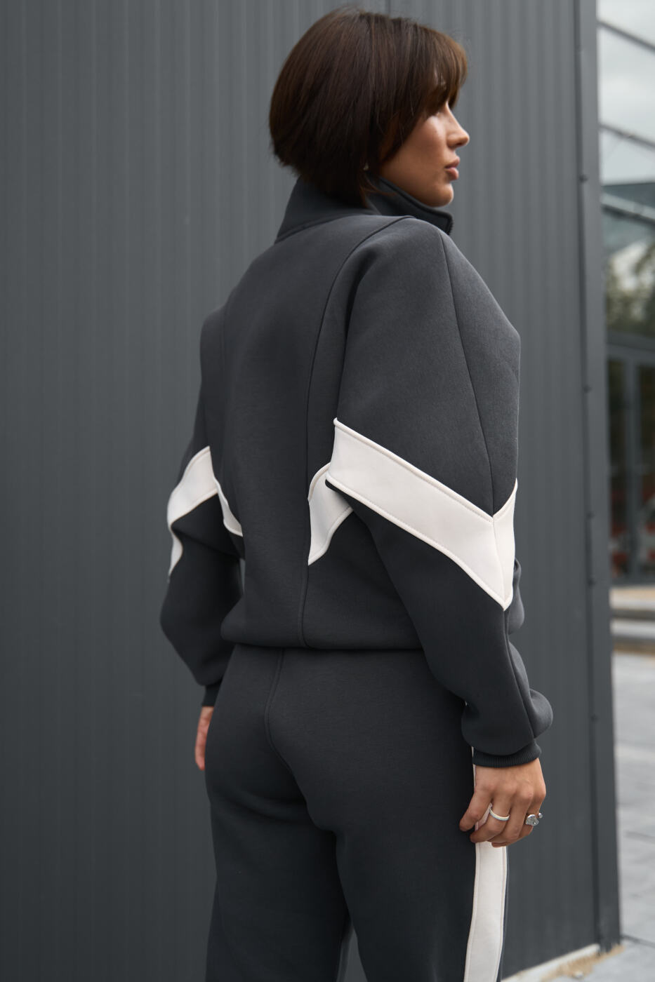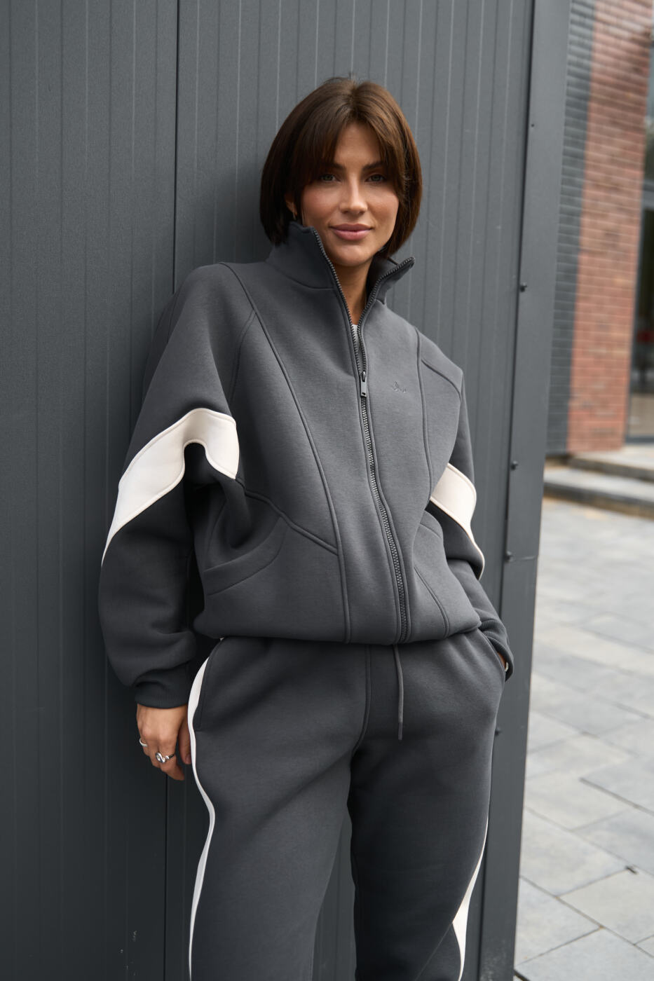 Комбінований оверсайз костюм Evelyne з трьохнитики на флісі Графіт+Таш