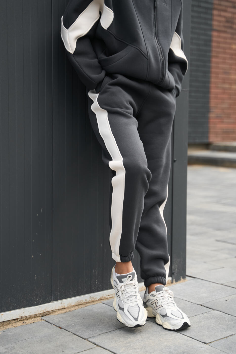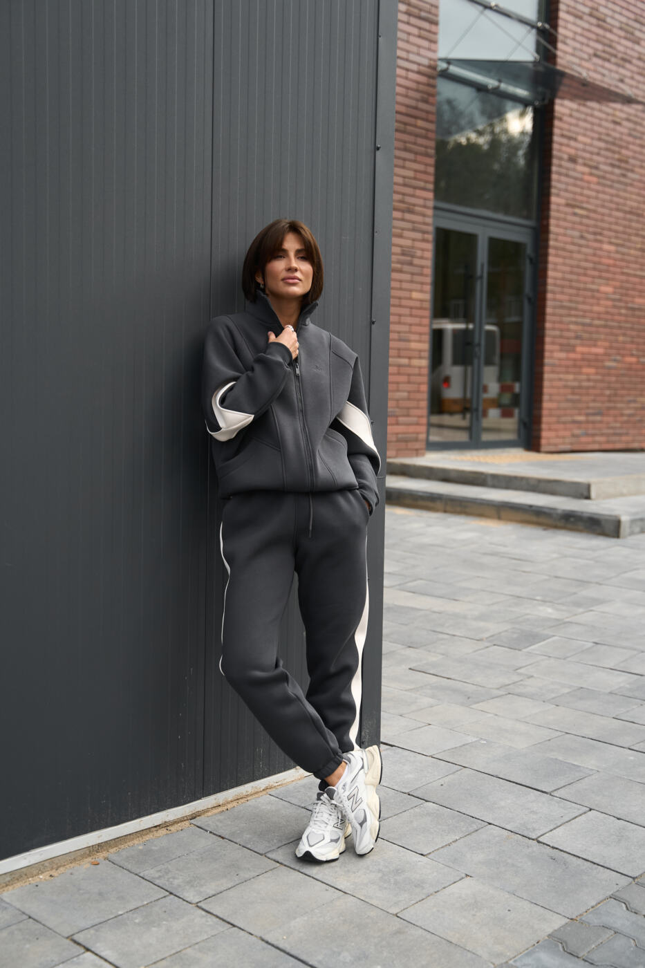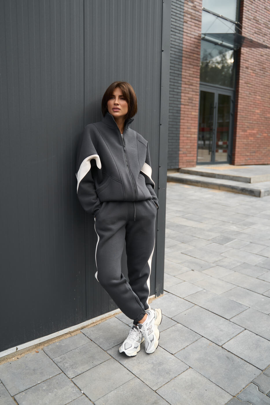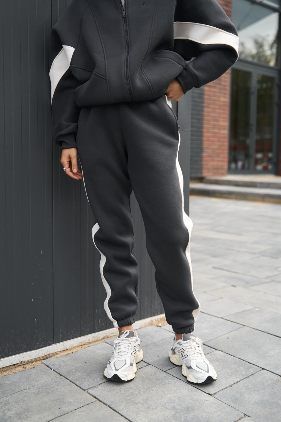 Комбінований оверсайз костюм Evelyne з трьохнитики на флісі Графіт+Таш