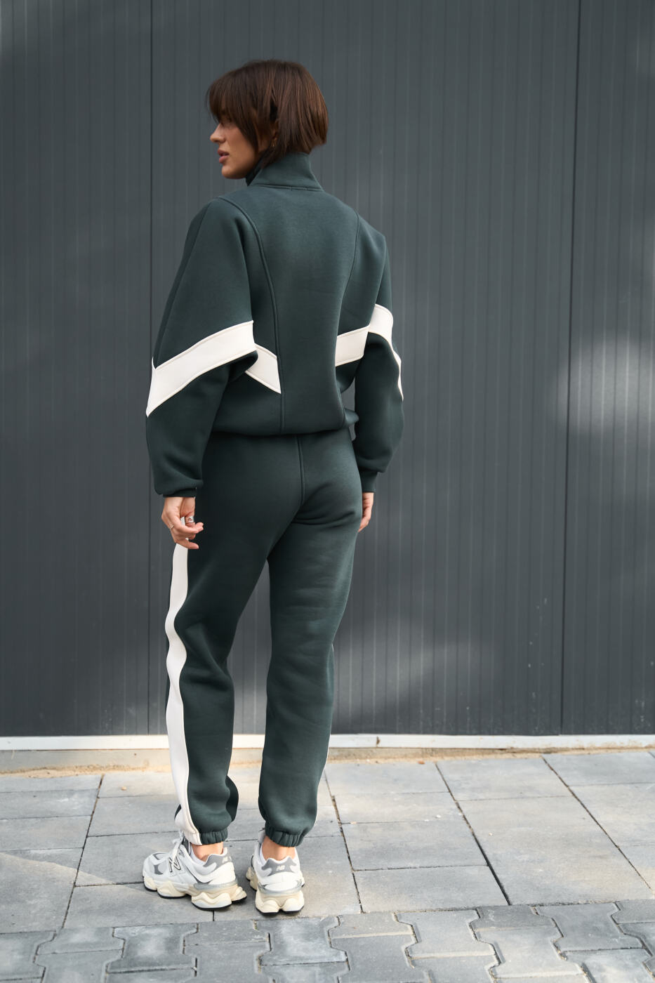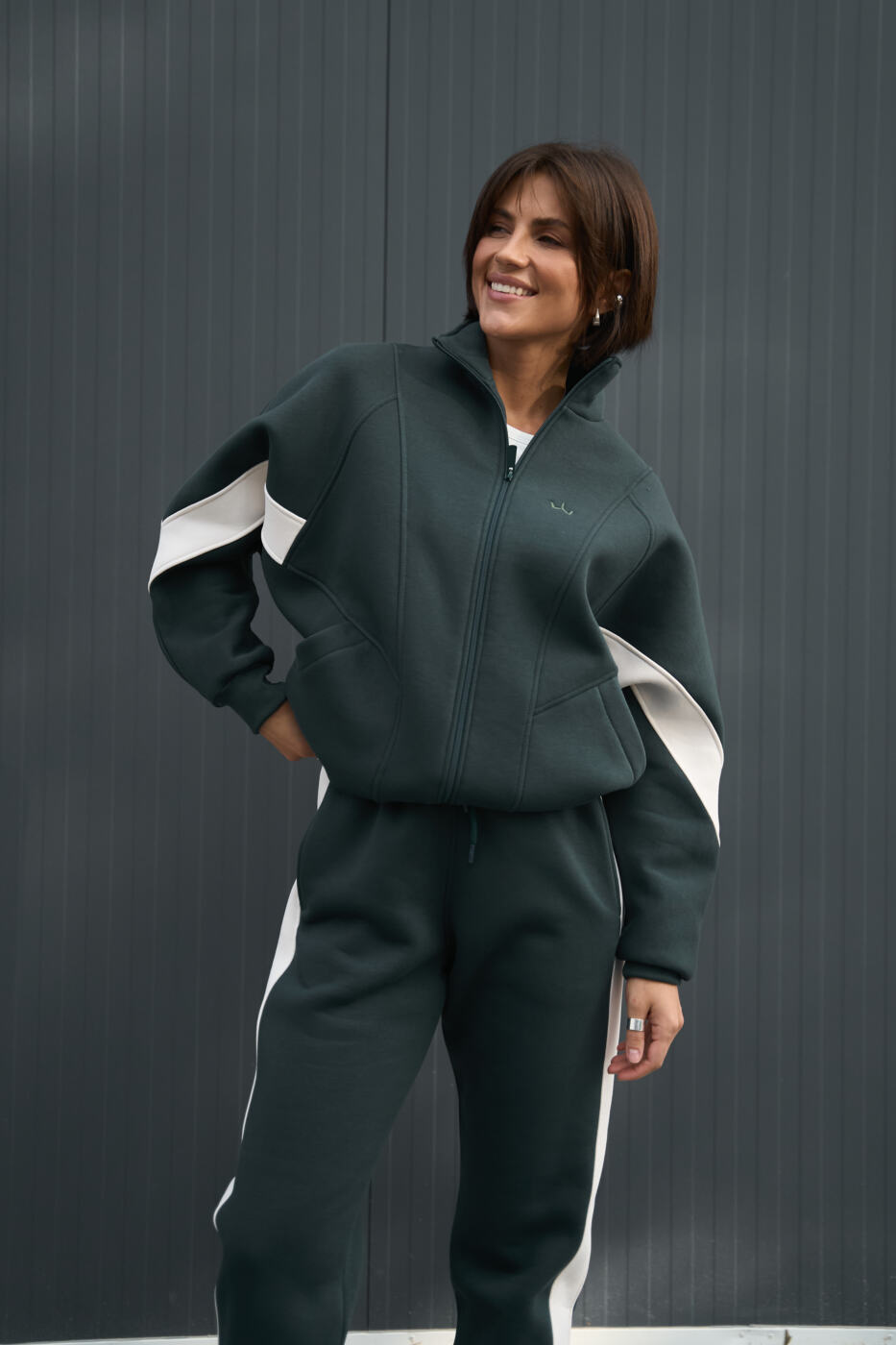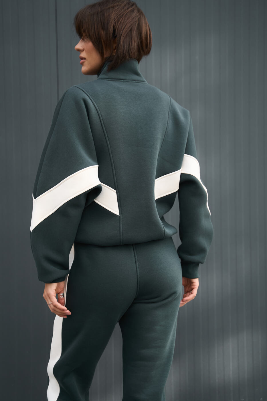Комбінований оверсайз костюм Evelyne з трьохнитики на флісі Зелений+Таш