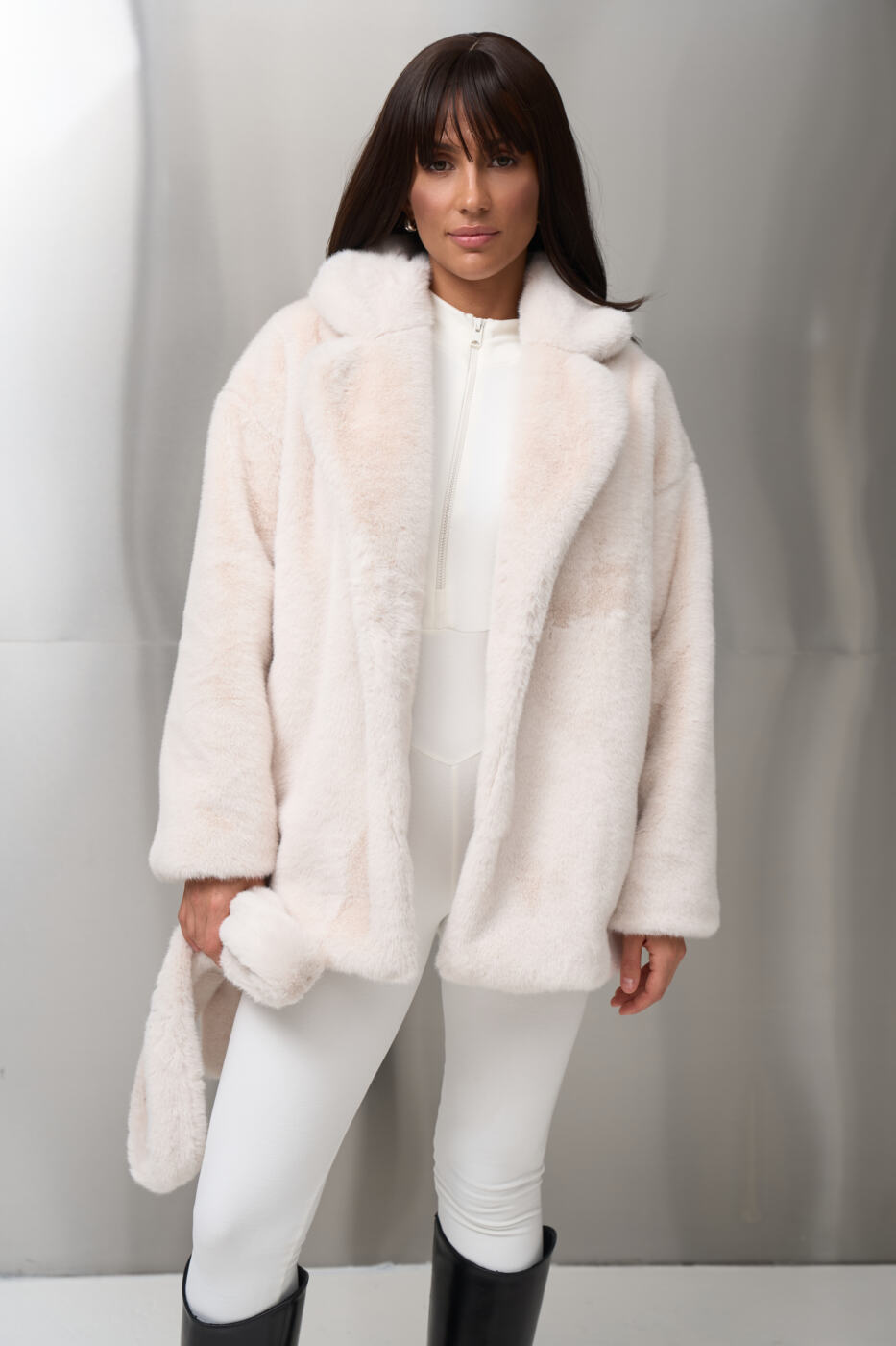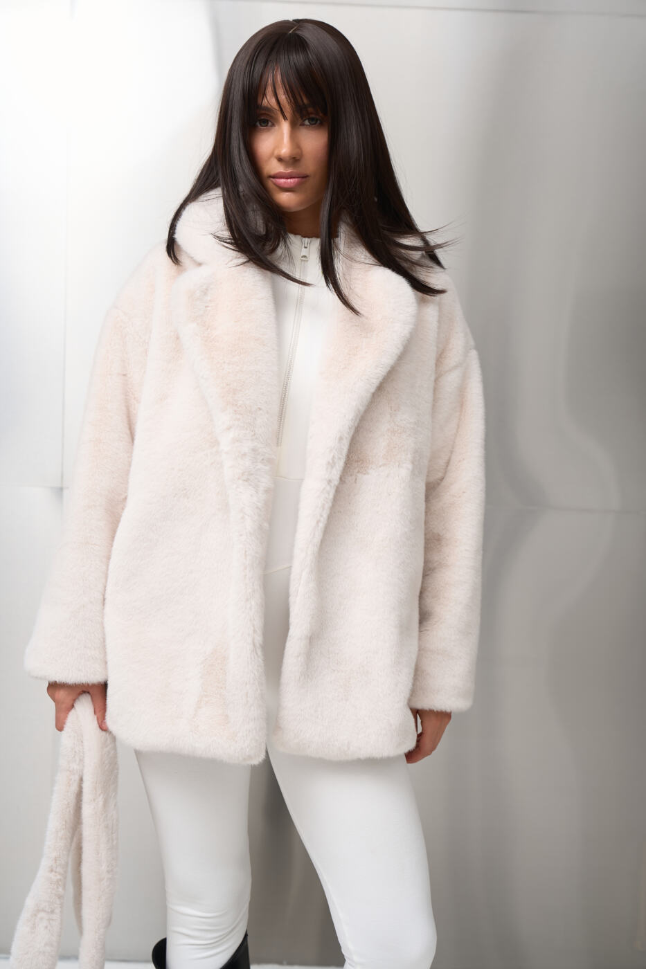 Класичний комір, вільний силует і пояс на талії створюють ідеальний акцент на фігурі, а універсальна довжина дозволяє носити шубувід FANME як у повсякденних, так і в вечірніх образах.