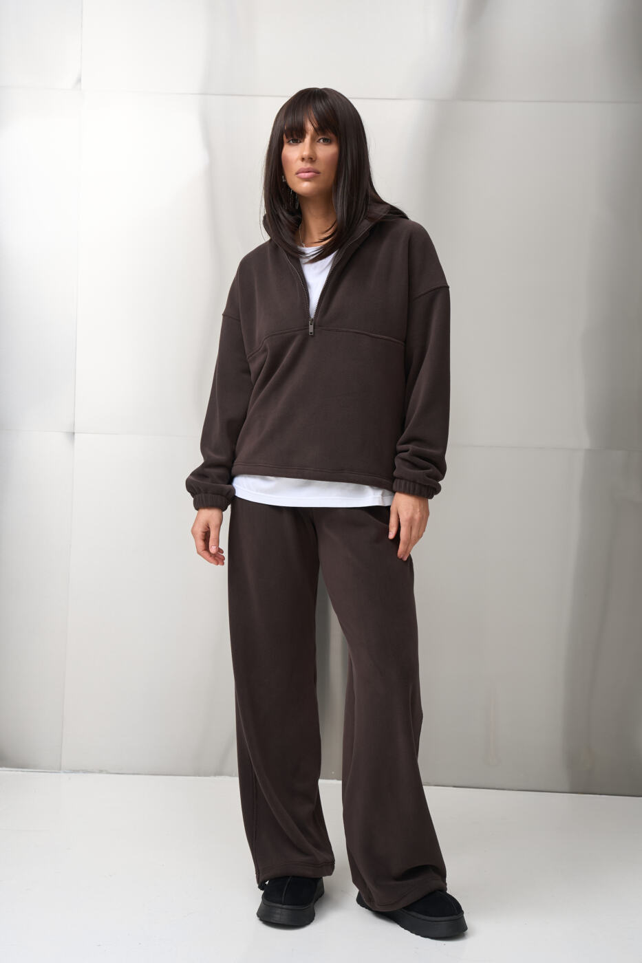 Стильний флісовий костюм FANME створений для тих, хто цінує максимальний комфорт і сучасний мінімалізм. Комплект складається з вільної кофти на блискавці до грудей та широких штанів із м’якого, приємного до тіла флісу. Матеріал добре утримує тепло, не кошлатиться та зберігає форму після прання.