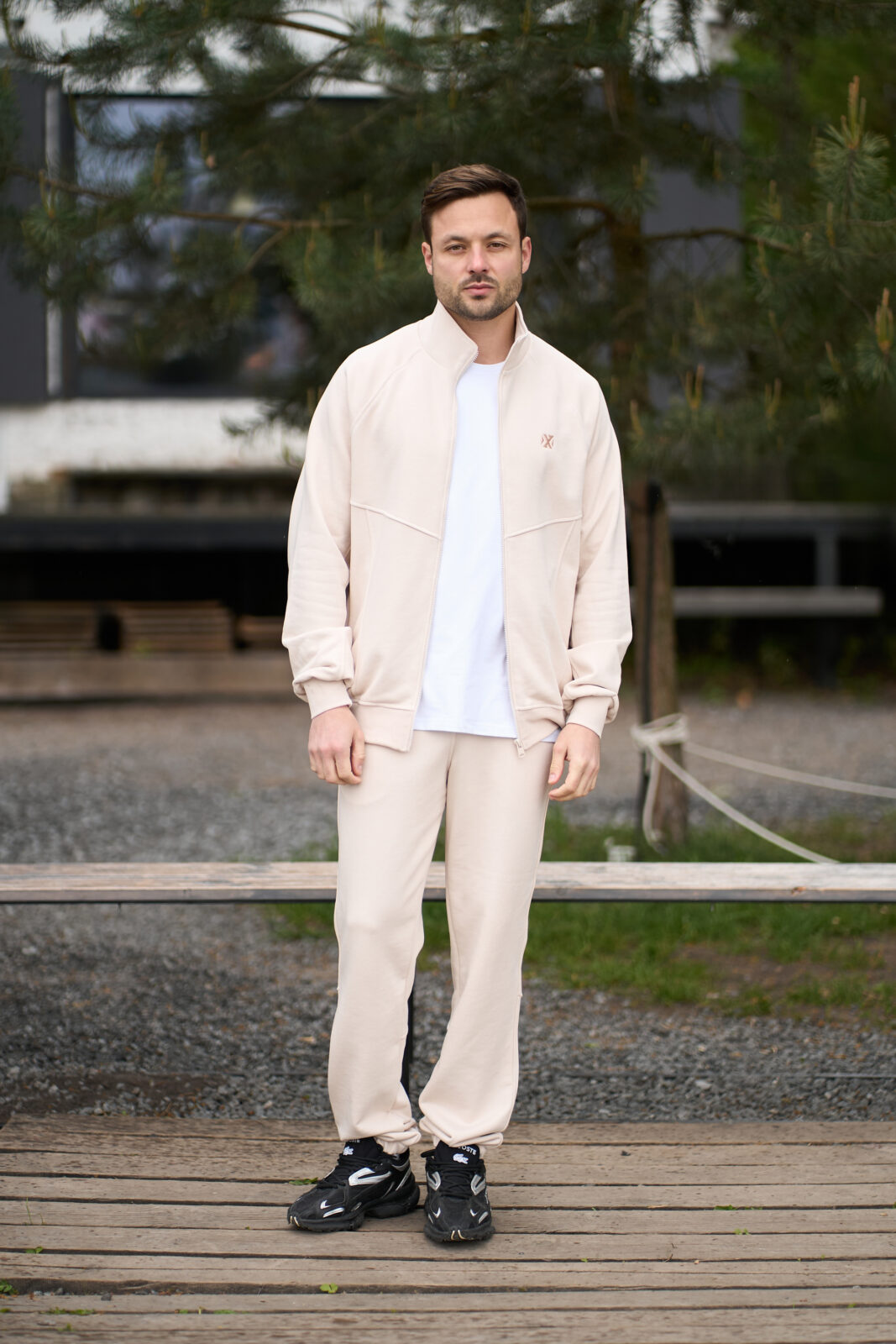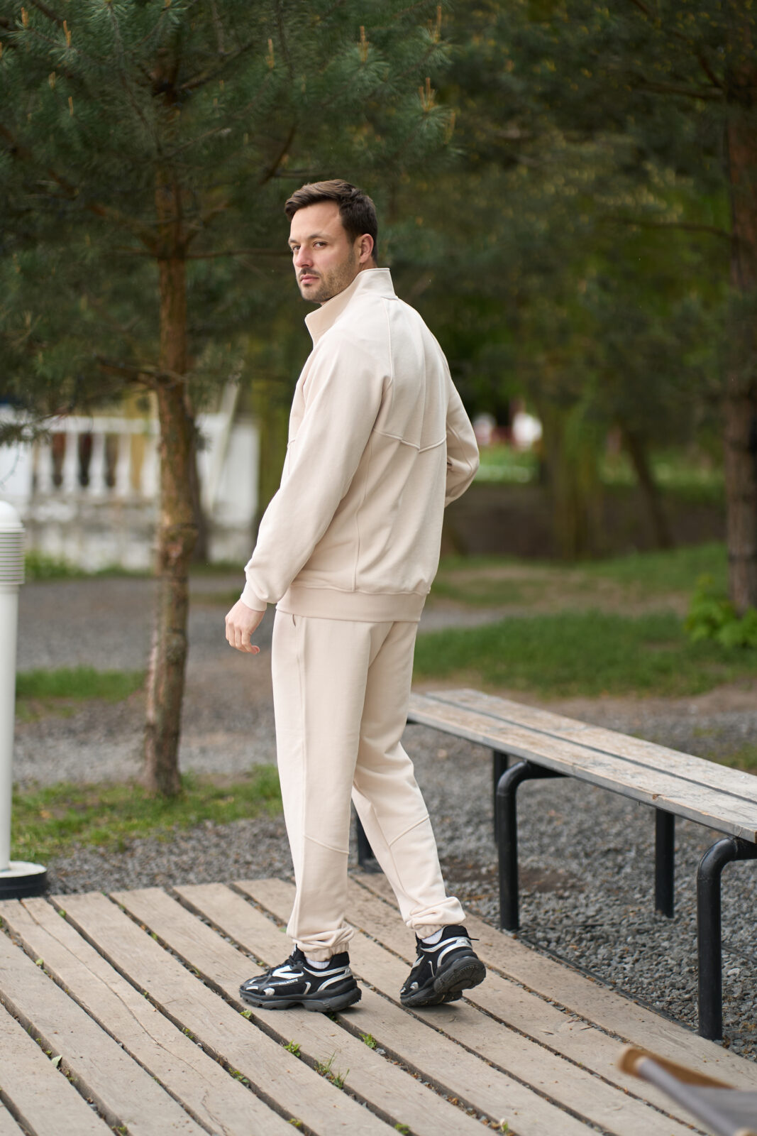 Стильний чоловічий костюм на блискавці з стойкою та вишитим лого