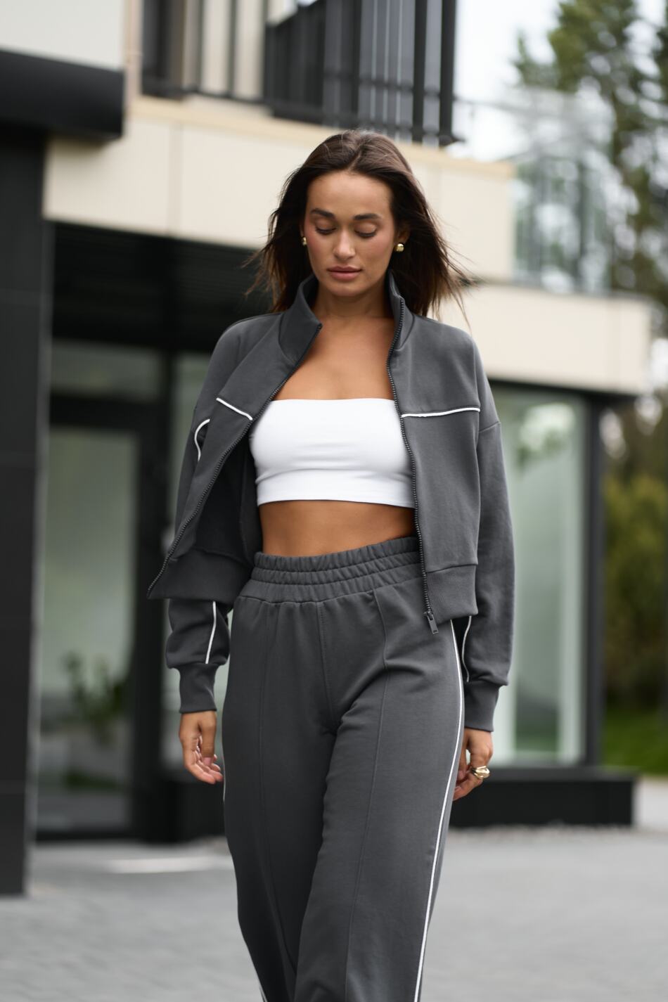 Костюм можна стилізувати під спорт та під casual, чудово поєднується з топом, базовими футболками та картатими сорочками