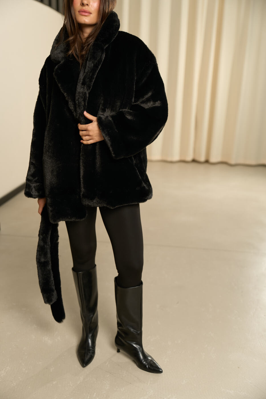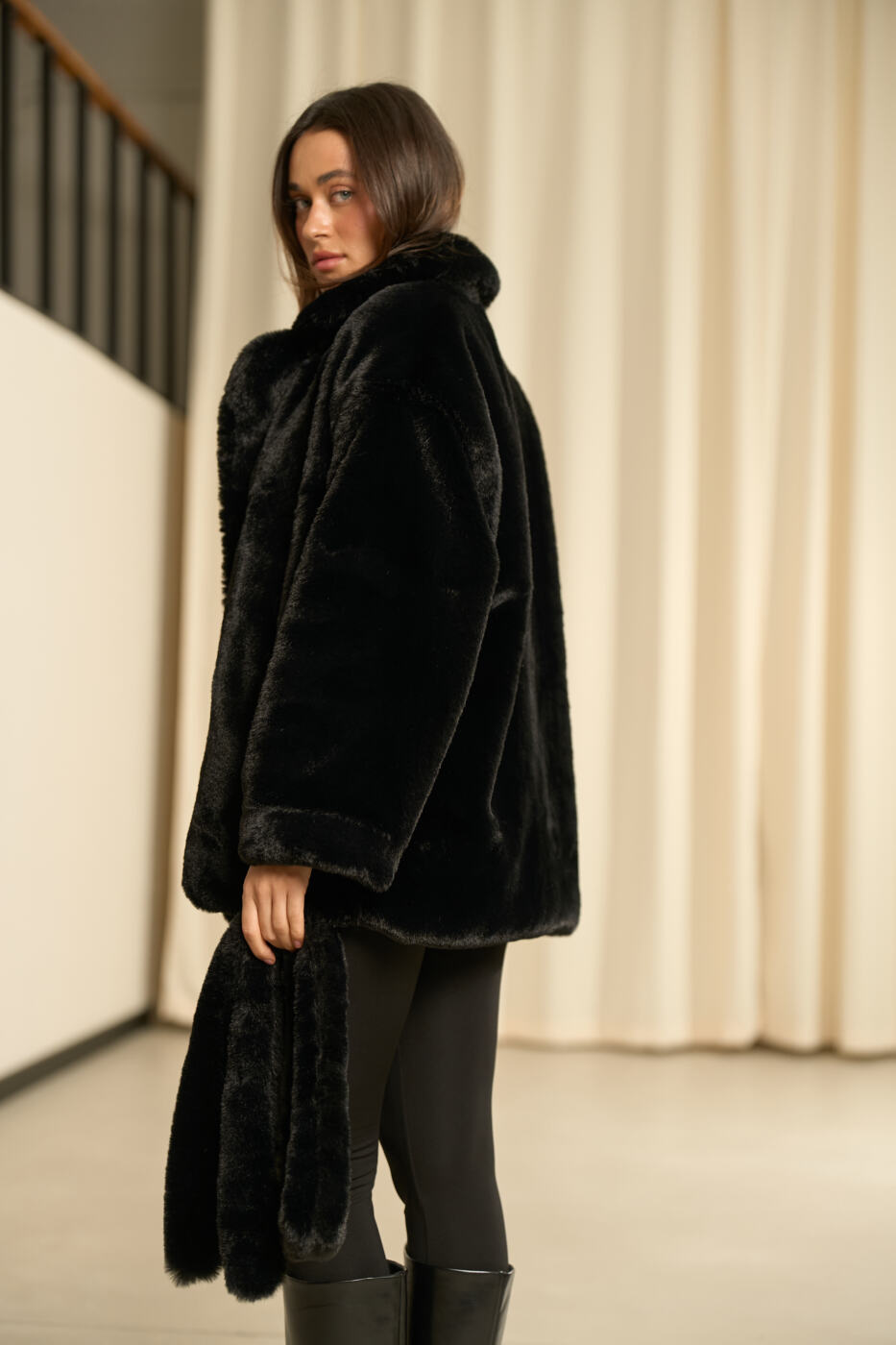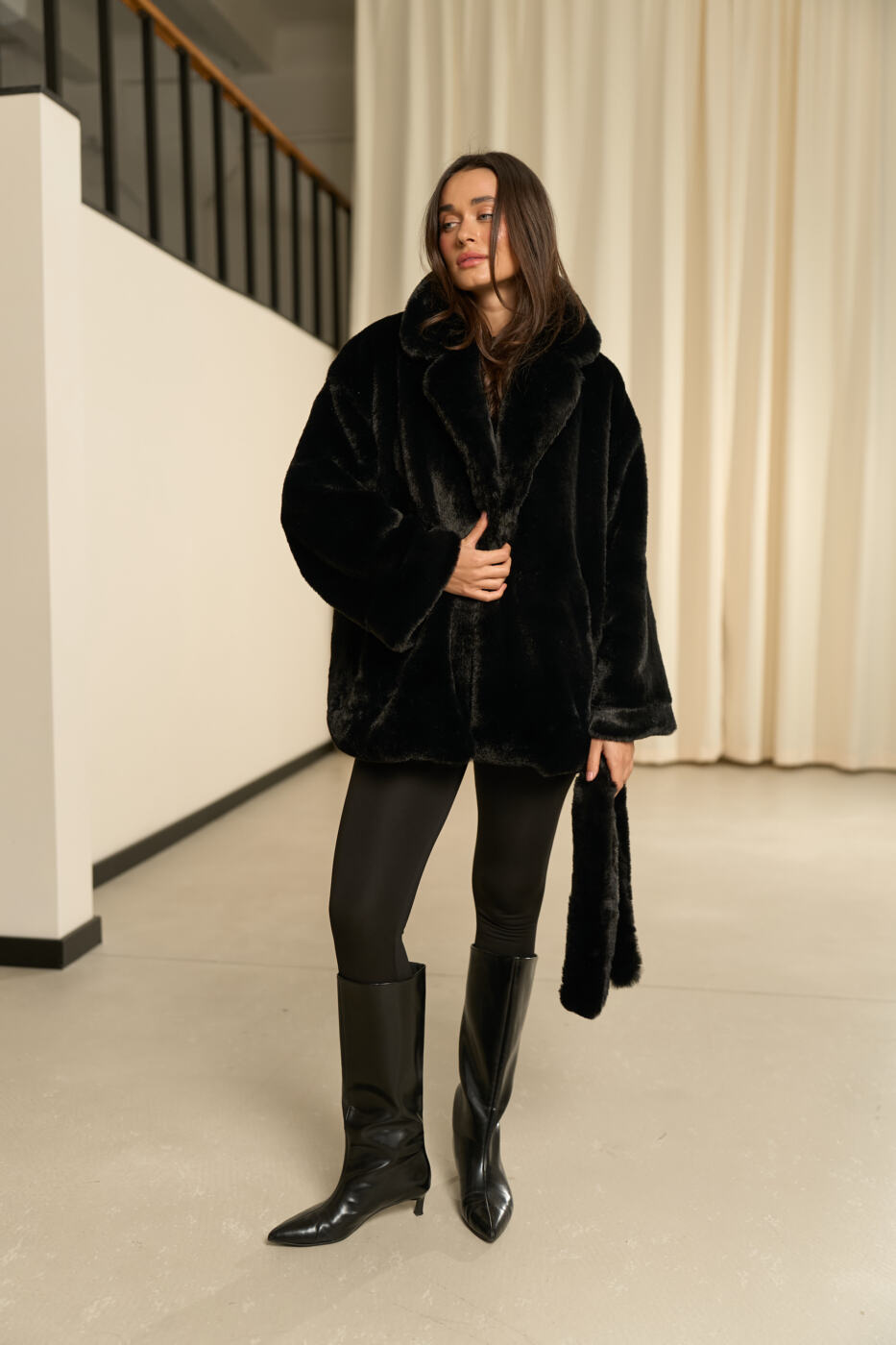 Класичний комір, вільний силует і пояс на талії створюють ідеальний акцент на фігурі, а універсальна довжина дозволяє носити шубувід FANME як у повсякденних, так і в вечірніх образах.