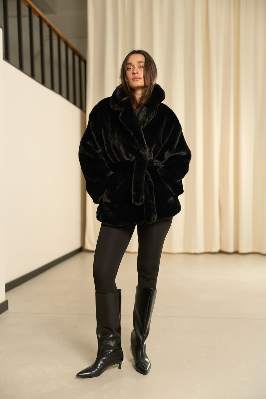 Стильна жіноча шуба Fierra від FANME  — це поєднання сучасної елегантності та максимального комфорту. Модель виконана зі щільного, м’якого штучного хутра з рівномірною текстурою, яке візуально виглядає дорого та ефектно.