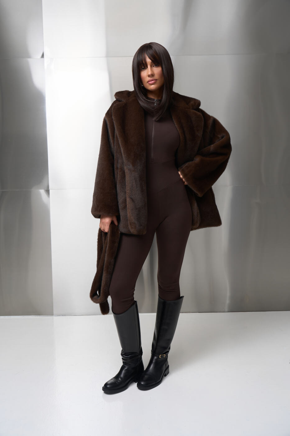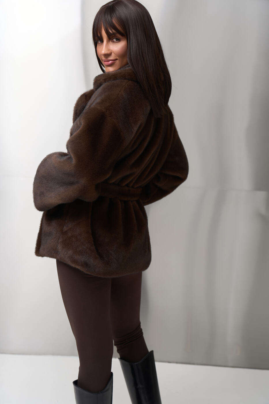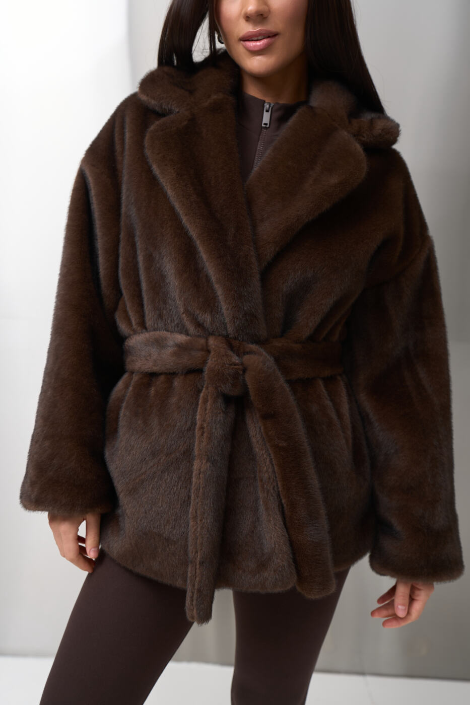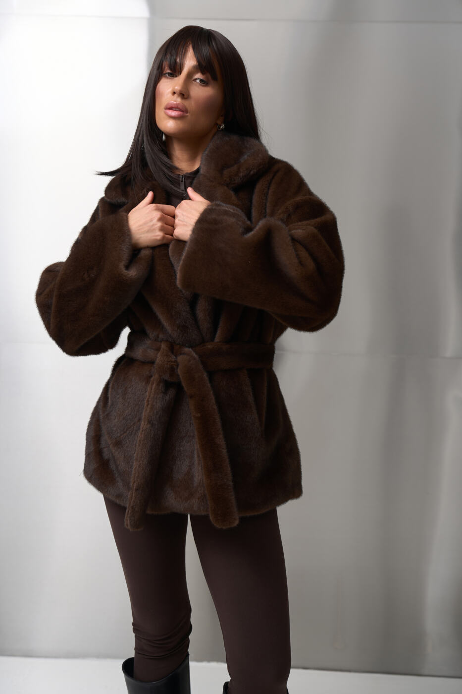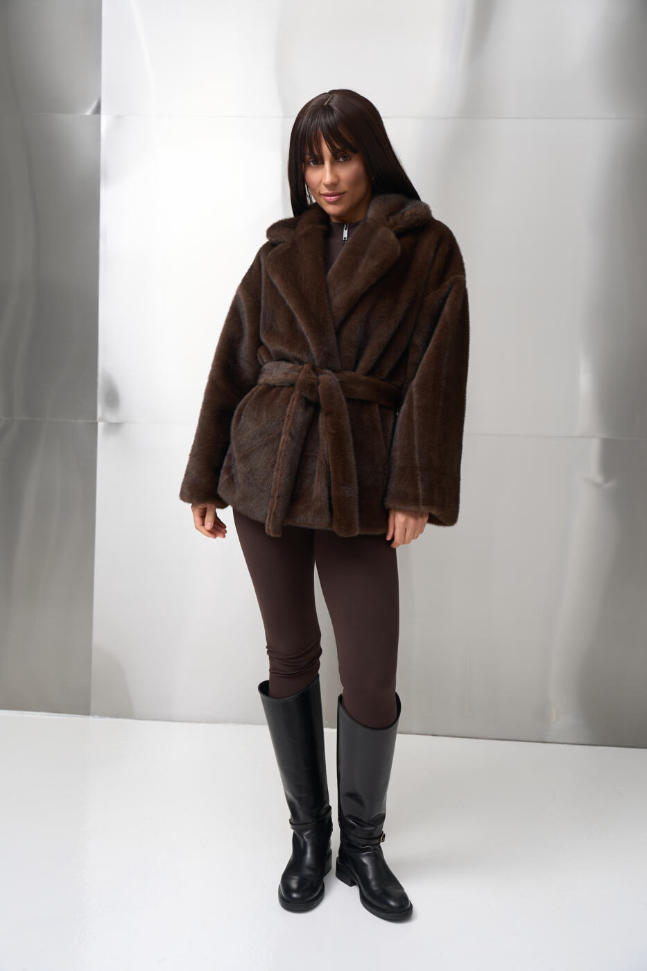 Класичний комір, вільний силует і пояс на талії створюють ідеальний акцент на фігурі, а універсальна довжина дозволяє носити шубувід FANME як у повсякденних, так і в вечірніх образах.
