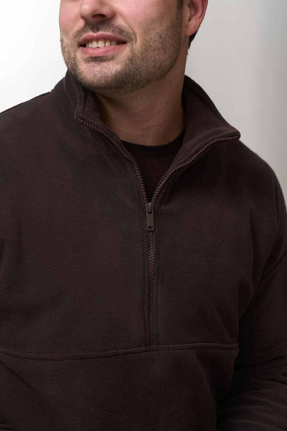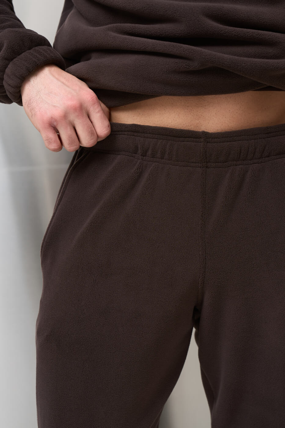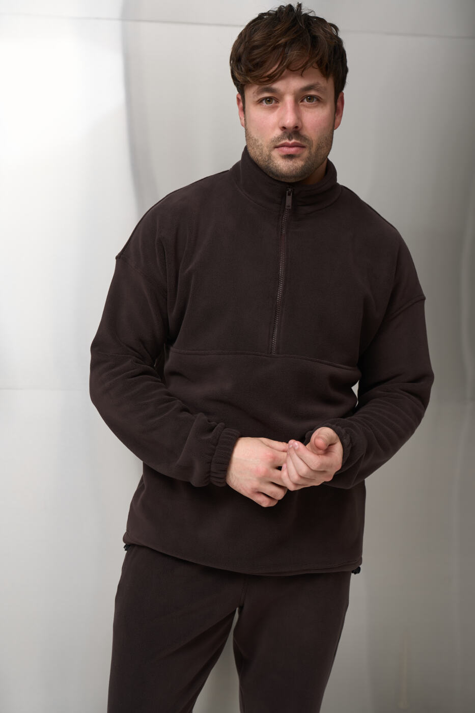 Чоловічий костюм FANME Teddy створений для тих, хто цінує максимальний комфорт і м’якість у холодну пору року. Модель виготовлена з приємного на дотик флісу, який забезпечує чудову теплоізоляцію, водночас залишається легким і повітропроникним. Однотонний чорний дизайн робить костюм універсальним і легко поєднуваним із будь-яким взуттям чи верхнім одягом.