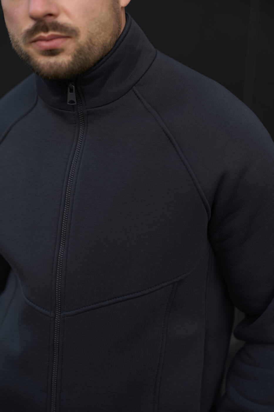 Кофта на блискавці з високим коміром-стійкою та продуманими лініями крою створює охайний, лаконічний силует. Манжети на рукавах і по низу додають зручності та допомагають зберігати тепло навіть під час активного руху.