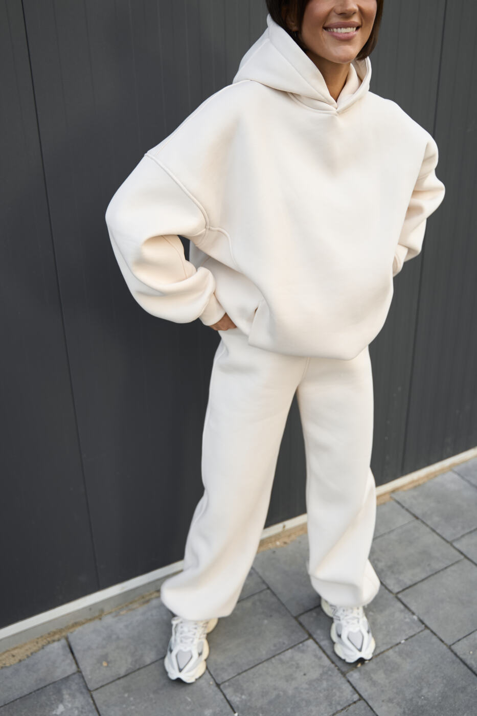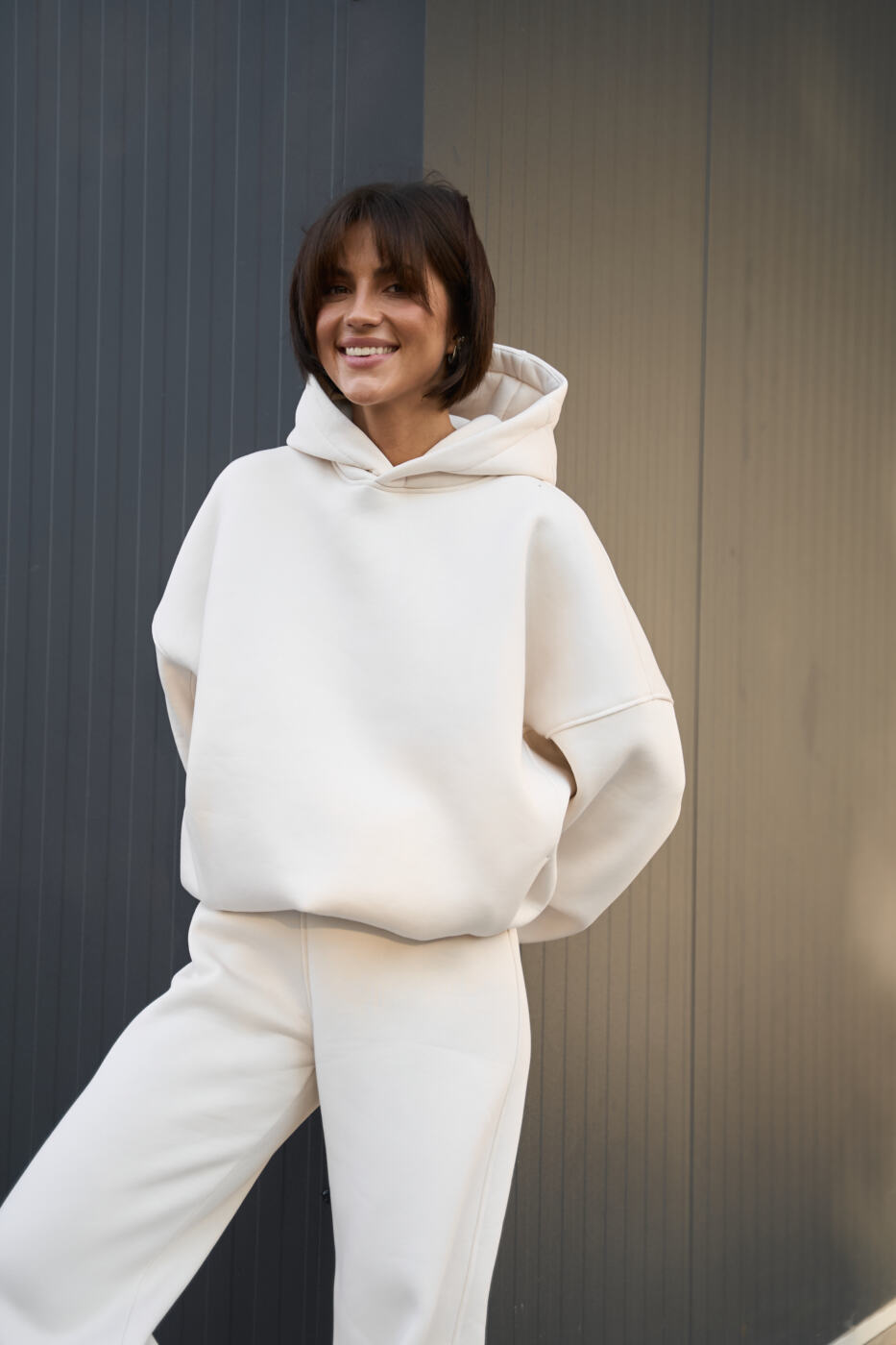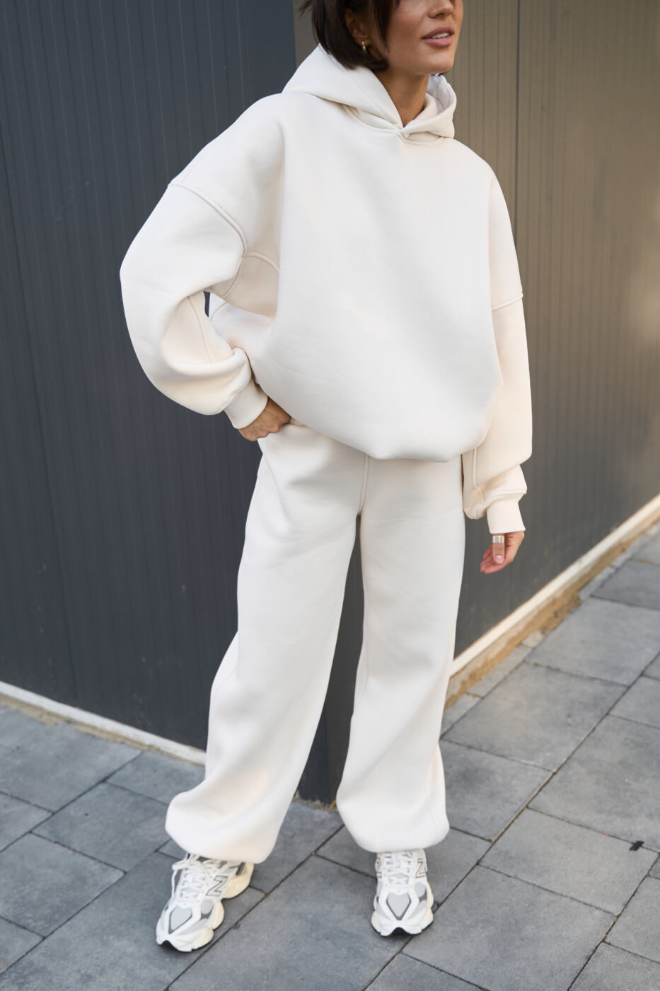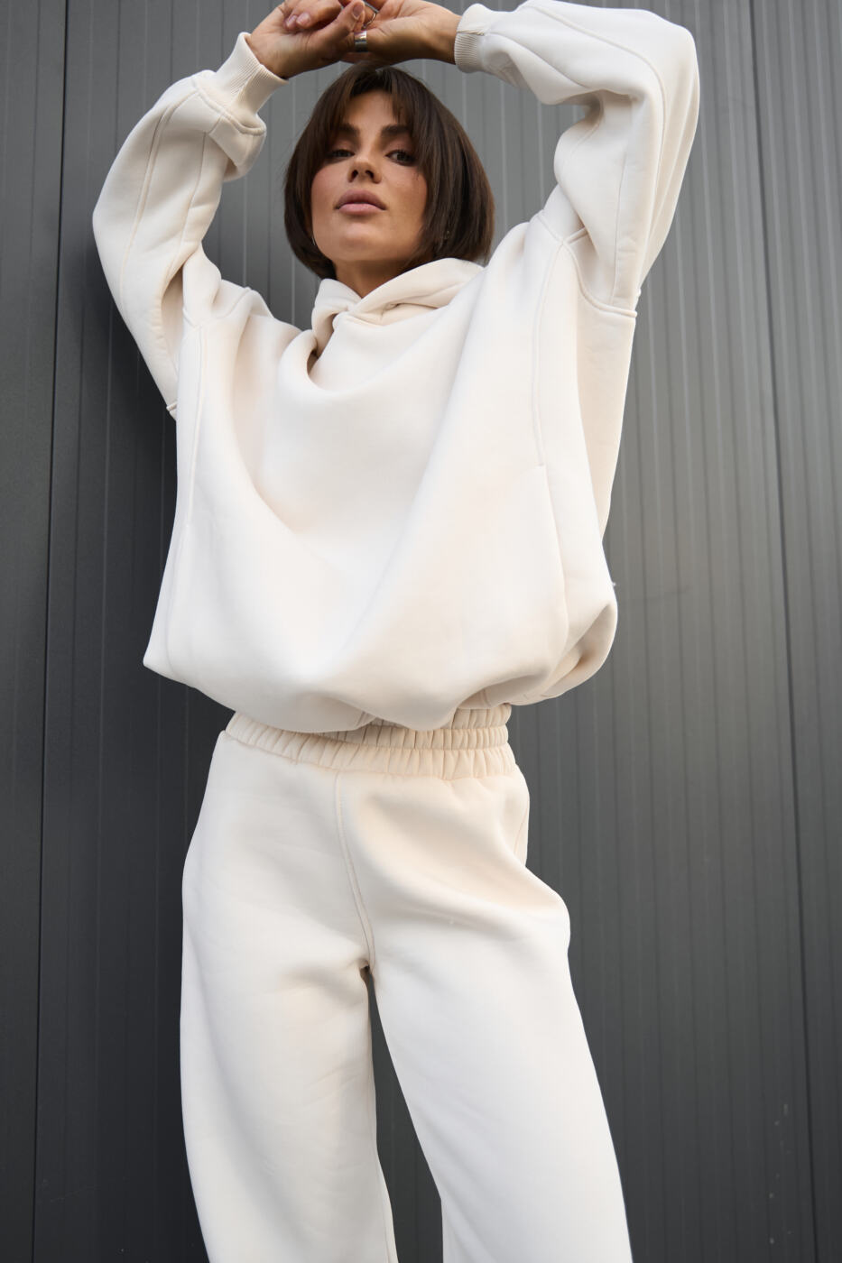Теплий жіночий Oversize костюм від Fanme, з трьохнитки на флісі Айворі