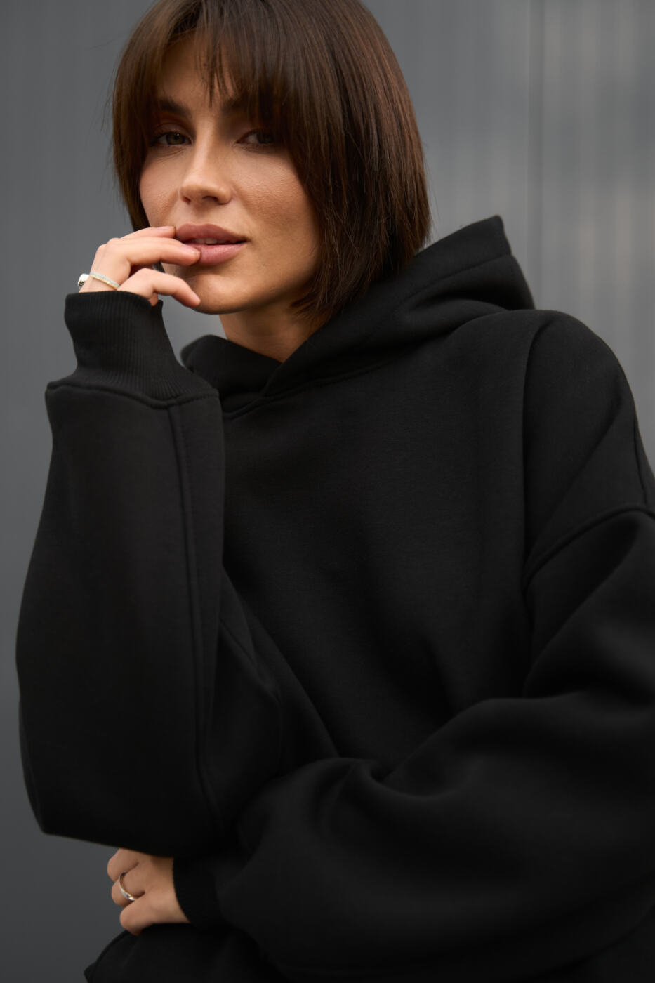 Теплий жіночий Oversize костюм від Fanme, з трьохнитки на флісі Чорний