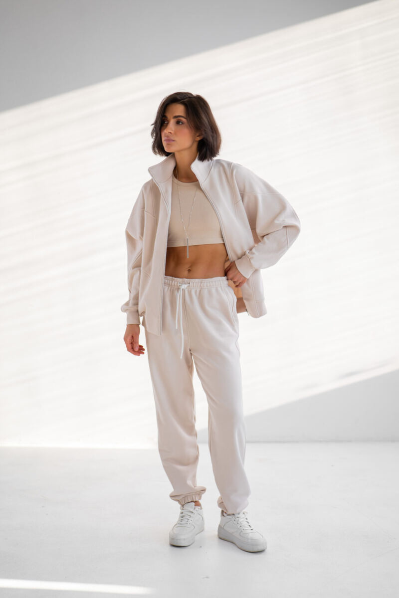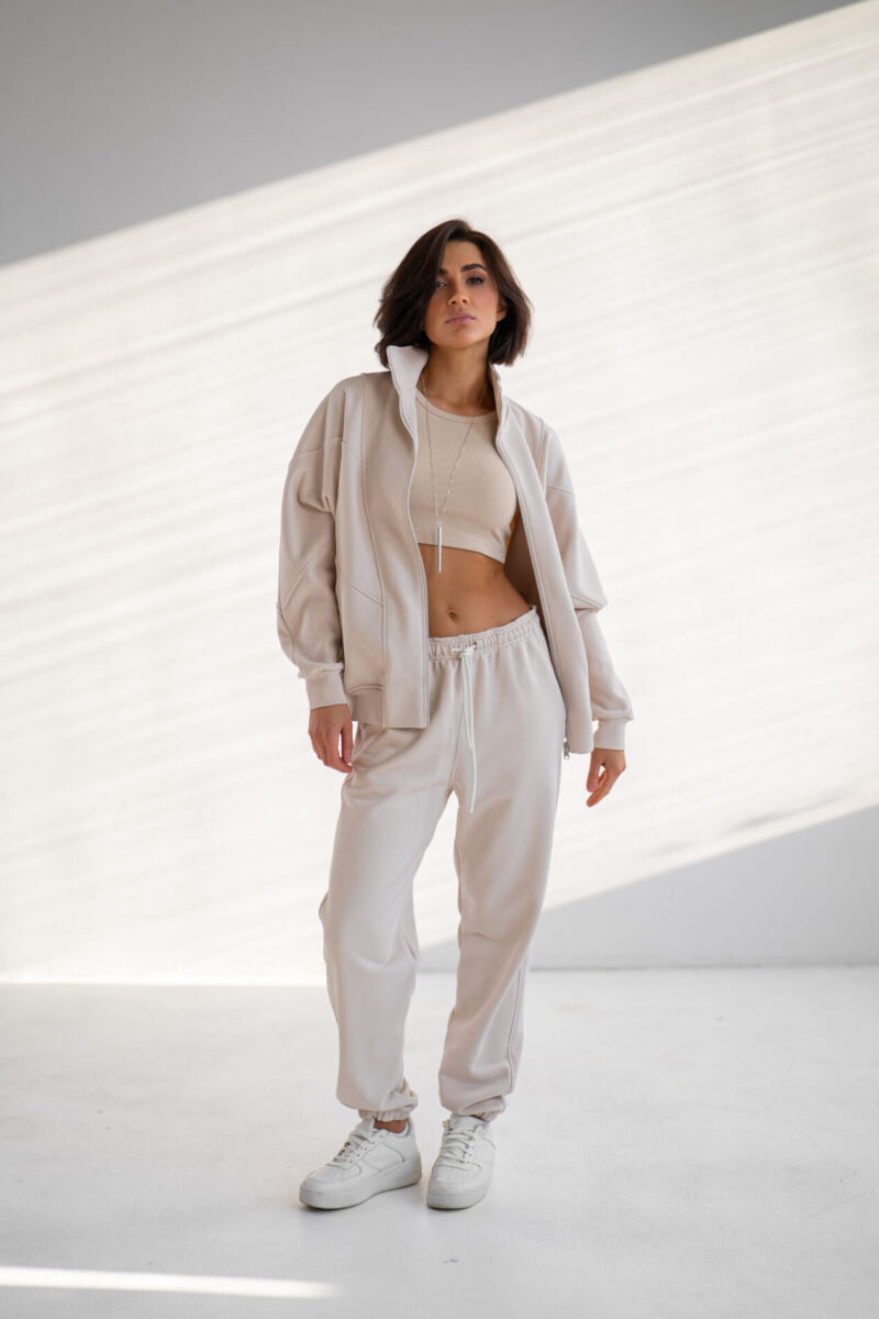 Худі близький до OVERSIZE зі стойкою на блискавці, має зручні манжети з кашкорсе, по низу також йде рібана, опущене плече, є бічні кишені